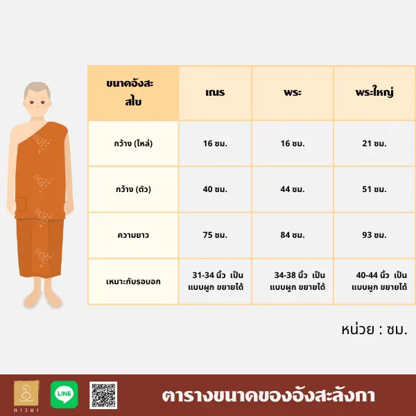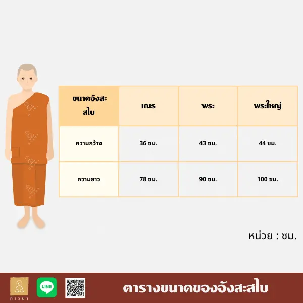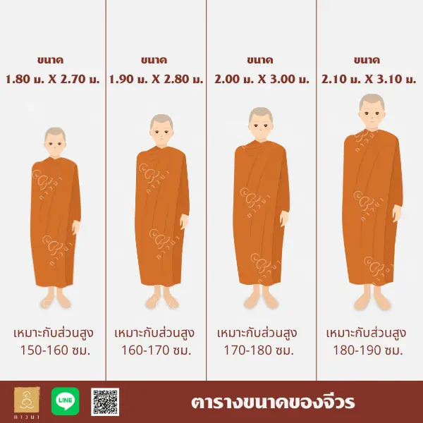 ตารางขนาดของจีวรของร้านภาวนา