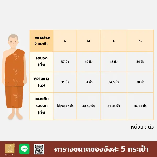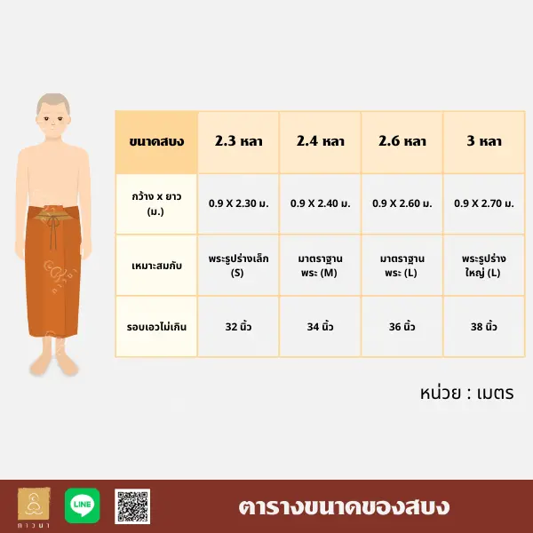 ตารางขนาดของสบงของทางร้านภาวนา