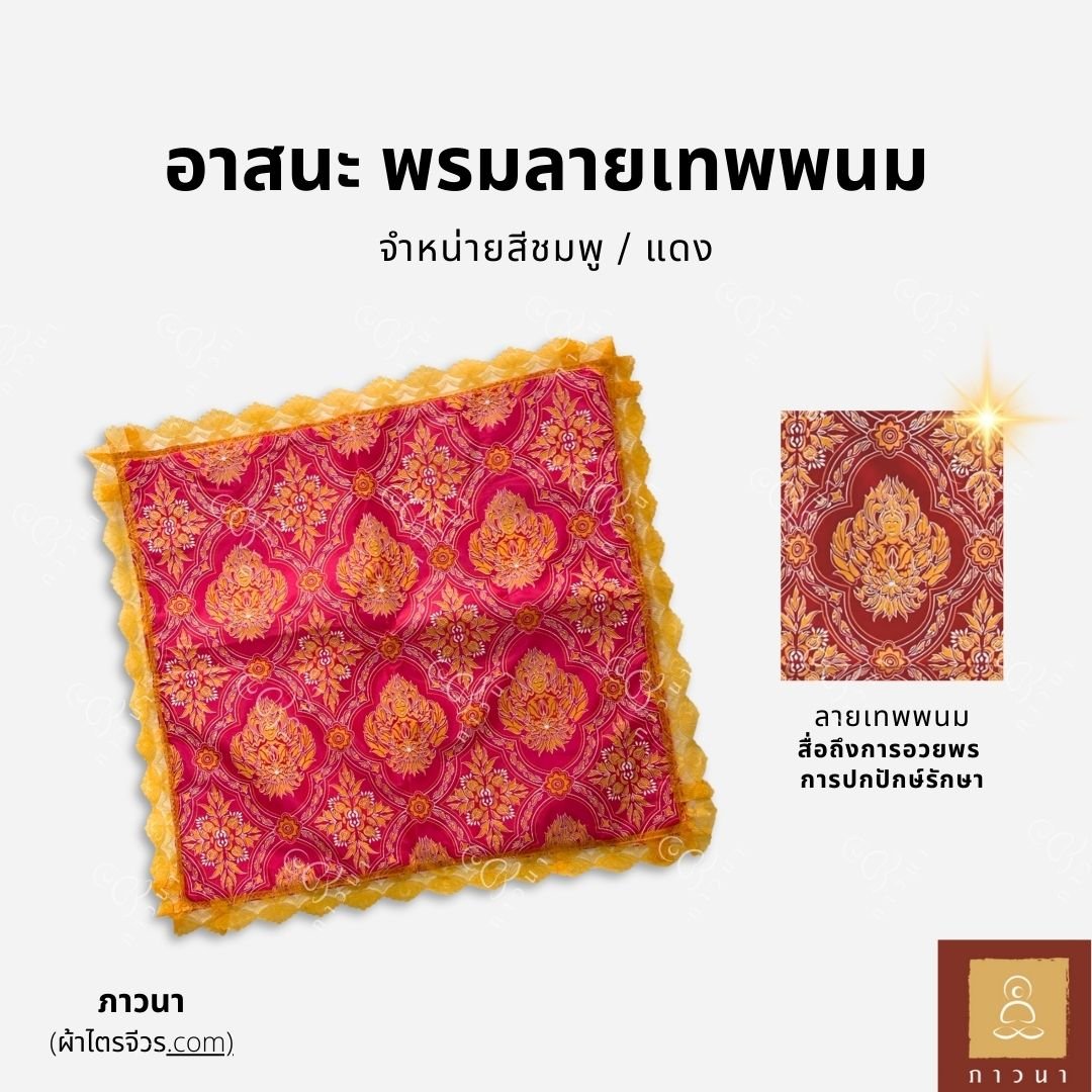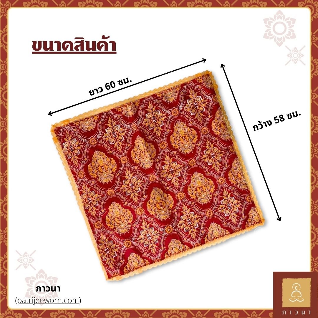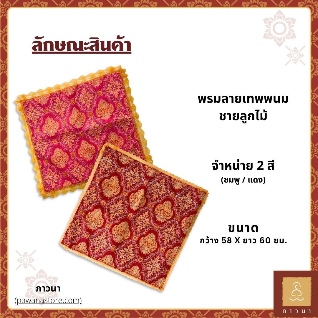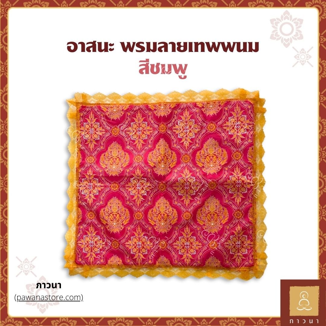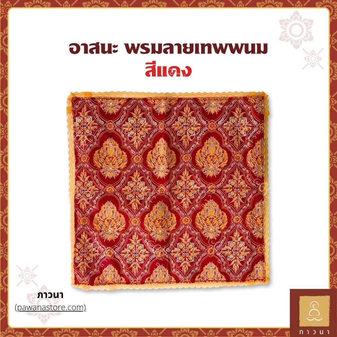 อาสนะพระ พรมลายเทพพนม ชายลูกไม้ – เบาะรองนั่งสำหรับพระสงฆ์ เหมาะสำหรับใช้ในงานพิธีทางศาสนา เช่น งานทำบุญบ้าน งานบวช หรือถวายสังฆทาน