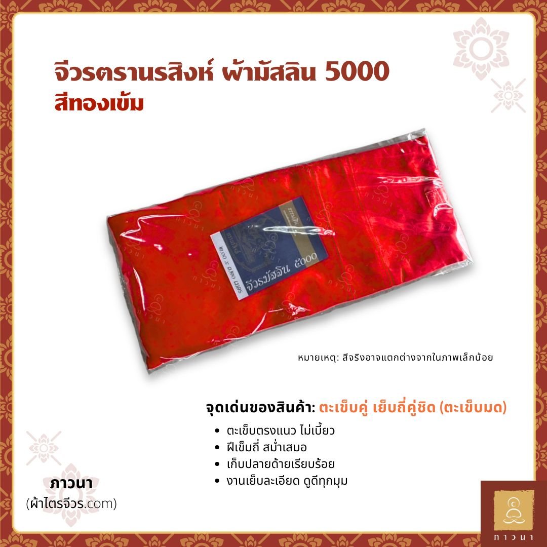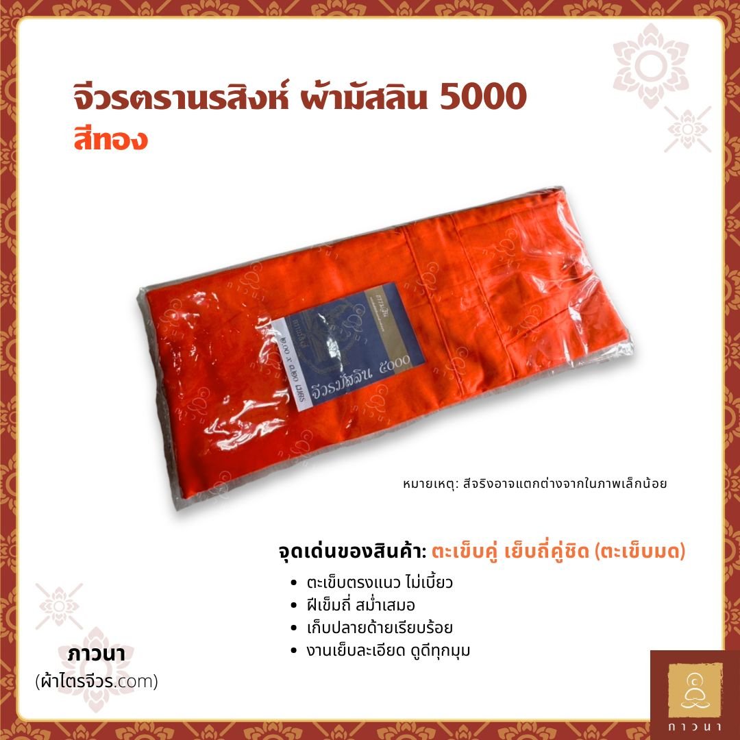 จีวรมัสลิน 5 ขันธ์ ตรานรสิงห์ ผ้าฝ้ายทอละเอียด รุ่นมัสลิน 5000 เย็บตะเข็บมด ถี่คู่ชิด แข็งแรง สวมใส่สบาย สีทอง/พระราชนิยม/แก่นบวร/ทองเข้ม/พระราชเข้ม